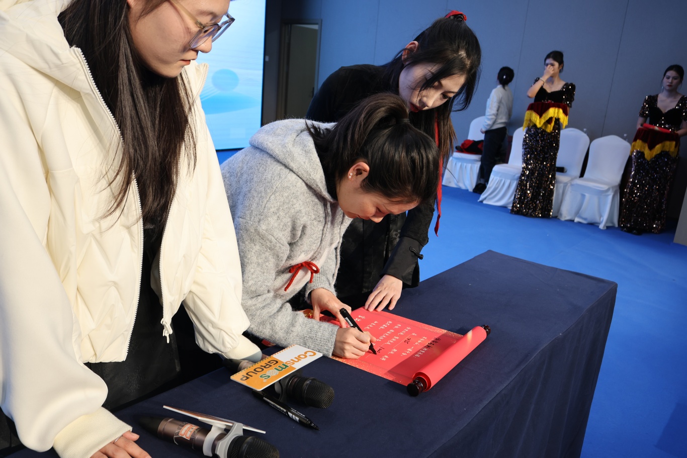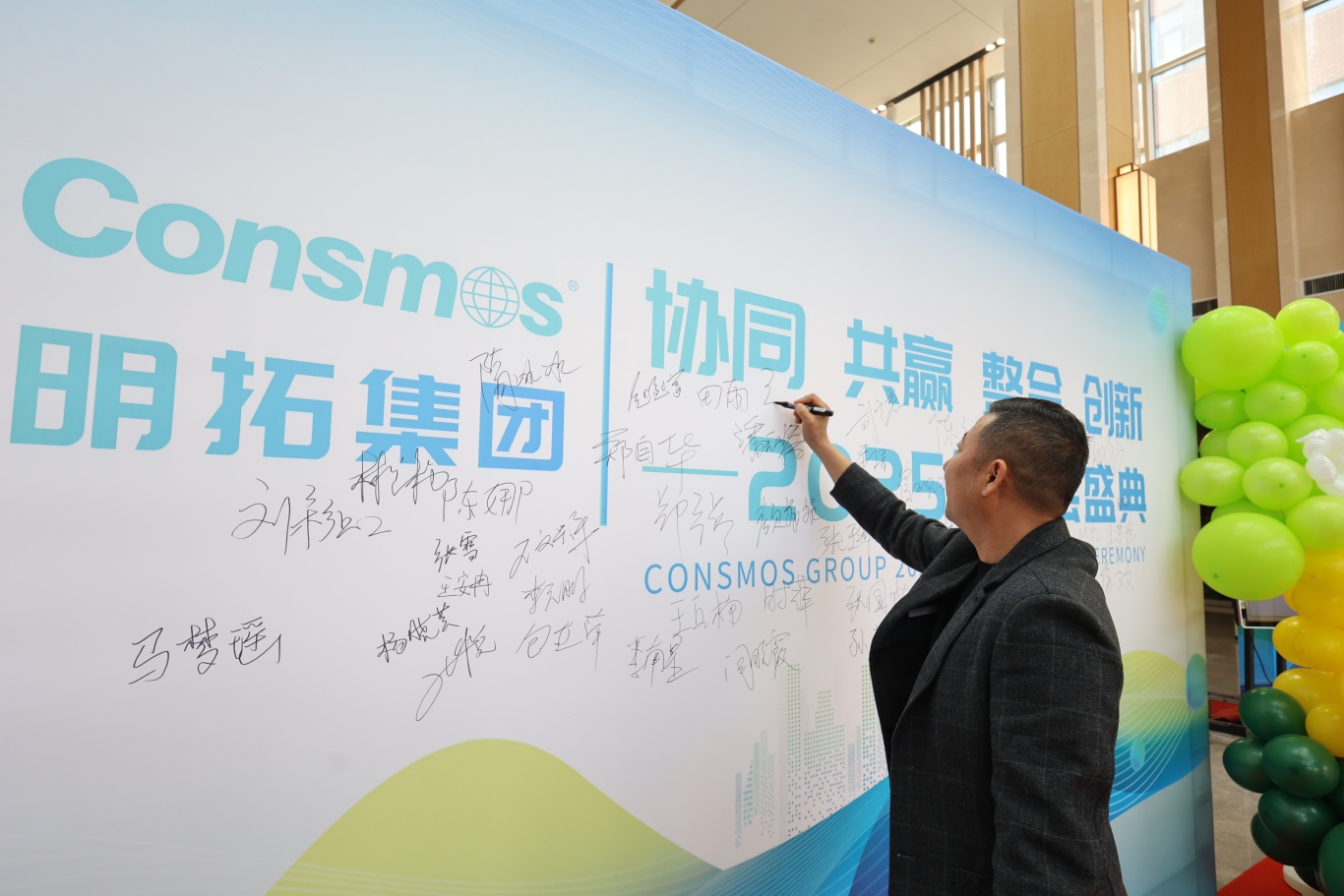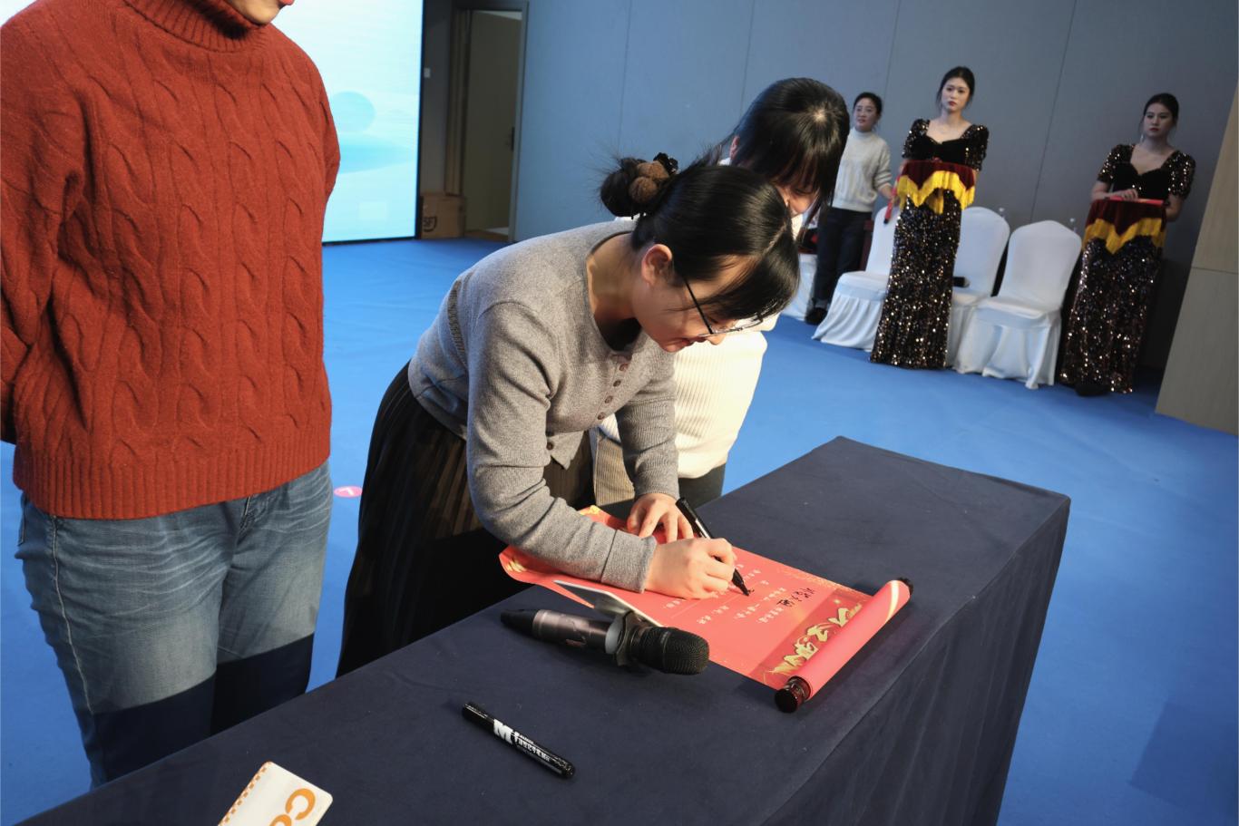 签约仪式上,集团各子公司、业务组满怀豪情地签订军令状,立下壮志雄心,一个个承诺重如泰山,一句句誓言如雷贯耳。新的一年,为了实现目标,明拓木业重点提升安全生产及精细化管理水平,永鸿国际立志在团队建设与品牌营销方面再上新台阶;板式家具项目将充分借助集团平台优势,勇于采用新打法、新模式,明拓进出口各业务组则决心持续创新学习,精细化管理团队,细致布局全球市场,全力做大做强木业板材基本盘,早日实现业绩翻番目标。军令状上的每一个字,都承载着沉甸甸的责任与炽热的希望,凝聚着团队的磅礴力量,推动集团迈向更高峰。