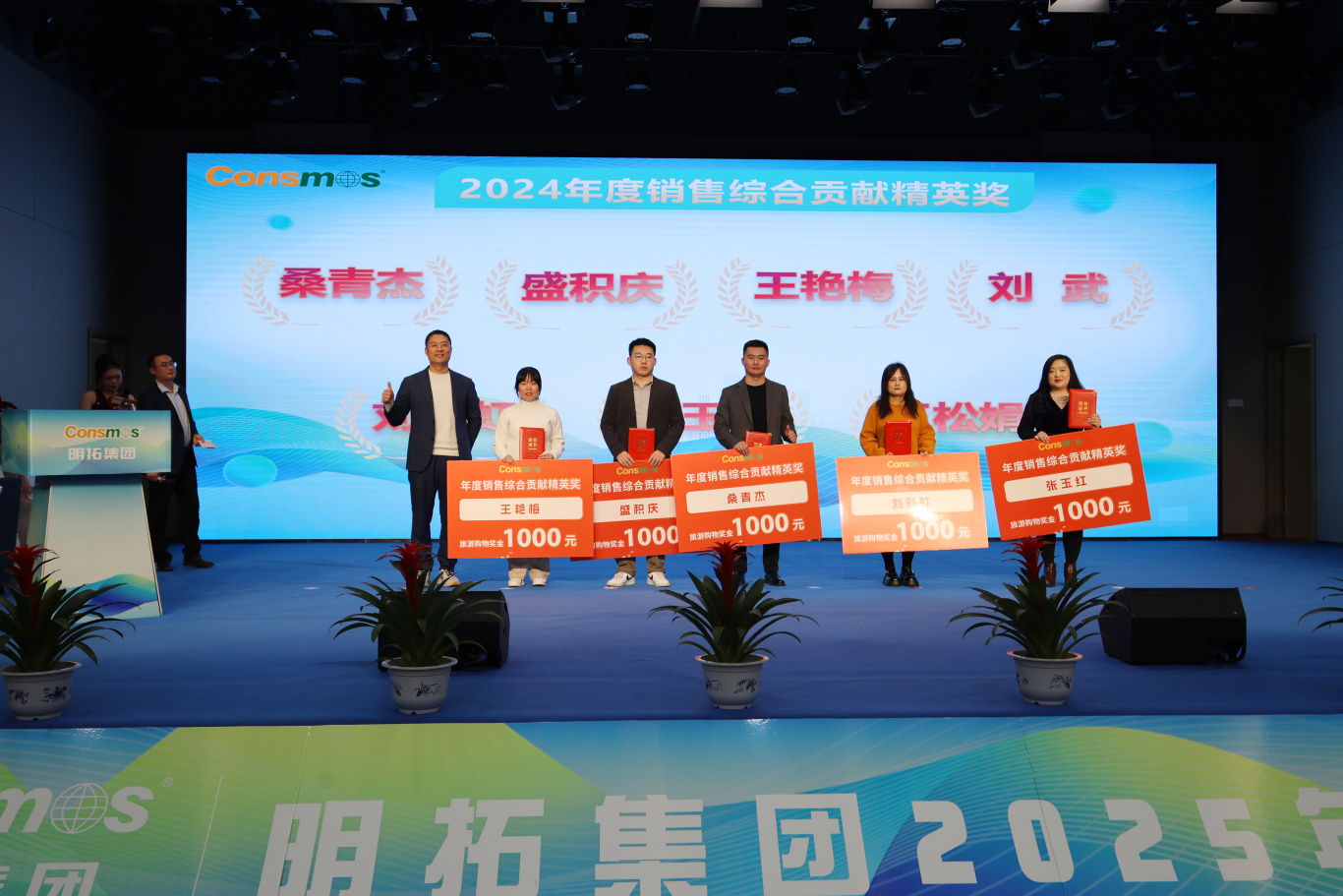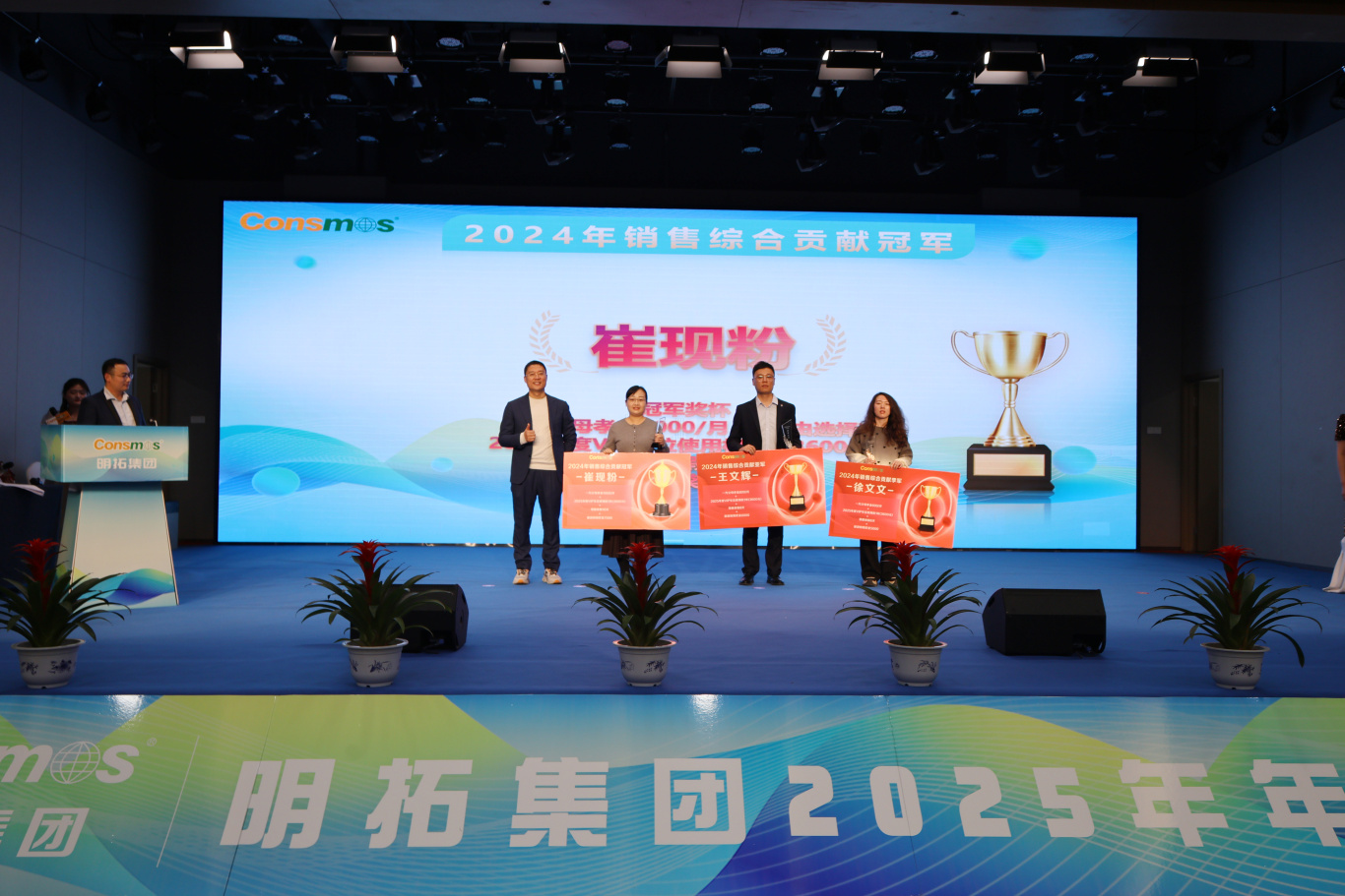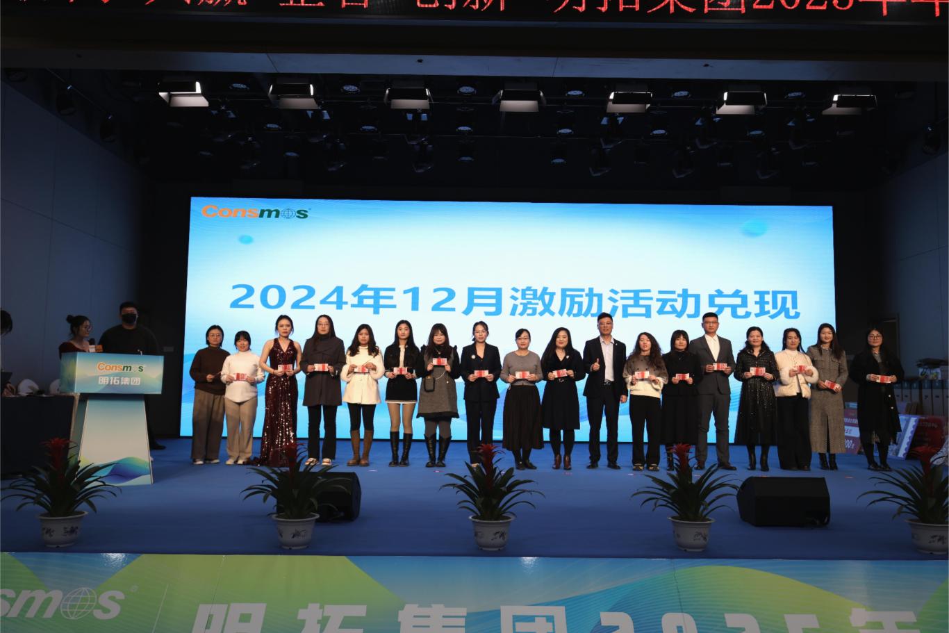 颁奖典礼环节,无疑是年会的高光时刻。从年度最佳新秀到优秀管理者,从成本贡献奖到品牌推广大使,还有兼顾员工职业规划、团队集体荣誉与集团整体发展的年度激励大奖,以及最受瞩目的销售冠军、亚军、季军,众多奖项逐一揭晓。每一个奖项背后,都有着无数个日夜的坚守与创新,都凝聚着员工的智慧与汗水。这些获奖者如点点繁星,汇聚成明拓集团璀璨银河,彰显出集团人才济济、活力四溢的蓬勃景象。