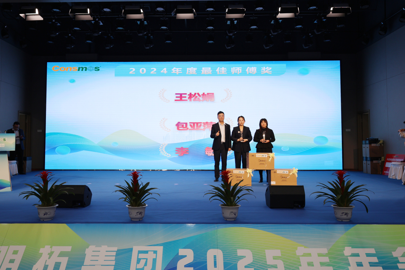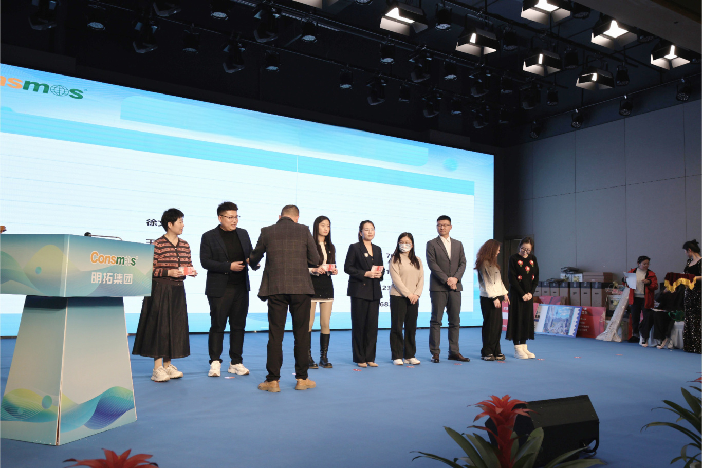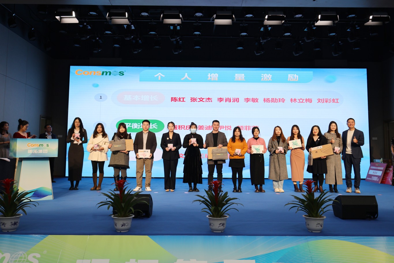 颁奖典礼环节,无疑是年会的高光时刻。从年度最佳新秀到优秀管理者,从成本贡献奖到品牌推广大使,还有兼顾员工职业规划、团队集体荣誉与集团整体发展的年度激励大奖,以及最受瞩目的销售冠军、亚军、季军,众多奖项逐一揭晓。每一个奖项背后,都有着无数个日夜的坚守与创新,都凝聚着员工的智慧与汗水。这些获奖者如点点繁星,汇聚成明拓集团璀璨银河,彰显出集团人才济济、活力四溢的蓬勃景象。