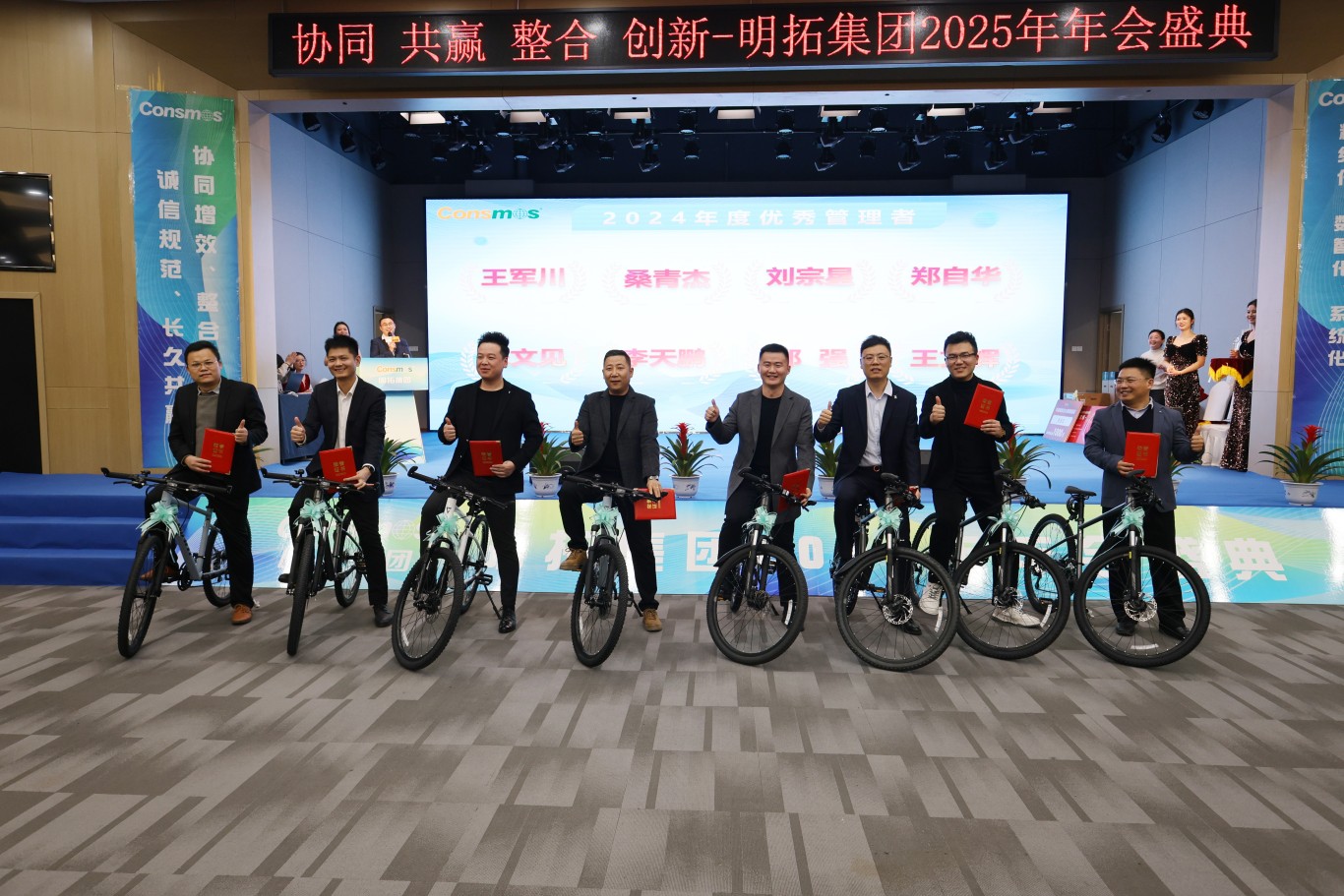 韩国五日游、国内五日游、旅游购物金、华为笔记本、平板、智能手表,捷安特自行车,小米智能家居产品……荣誉证书、精致奖杯与丰厚奖品,承载着集团对员工辛勤付出的高度认可与深深感激。