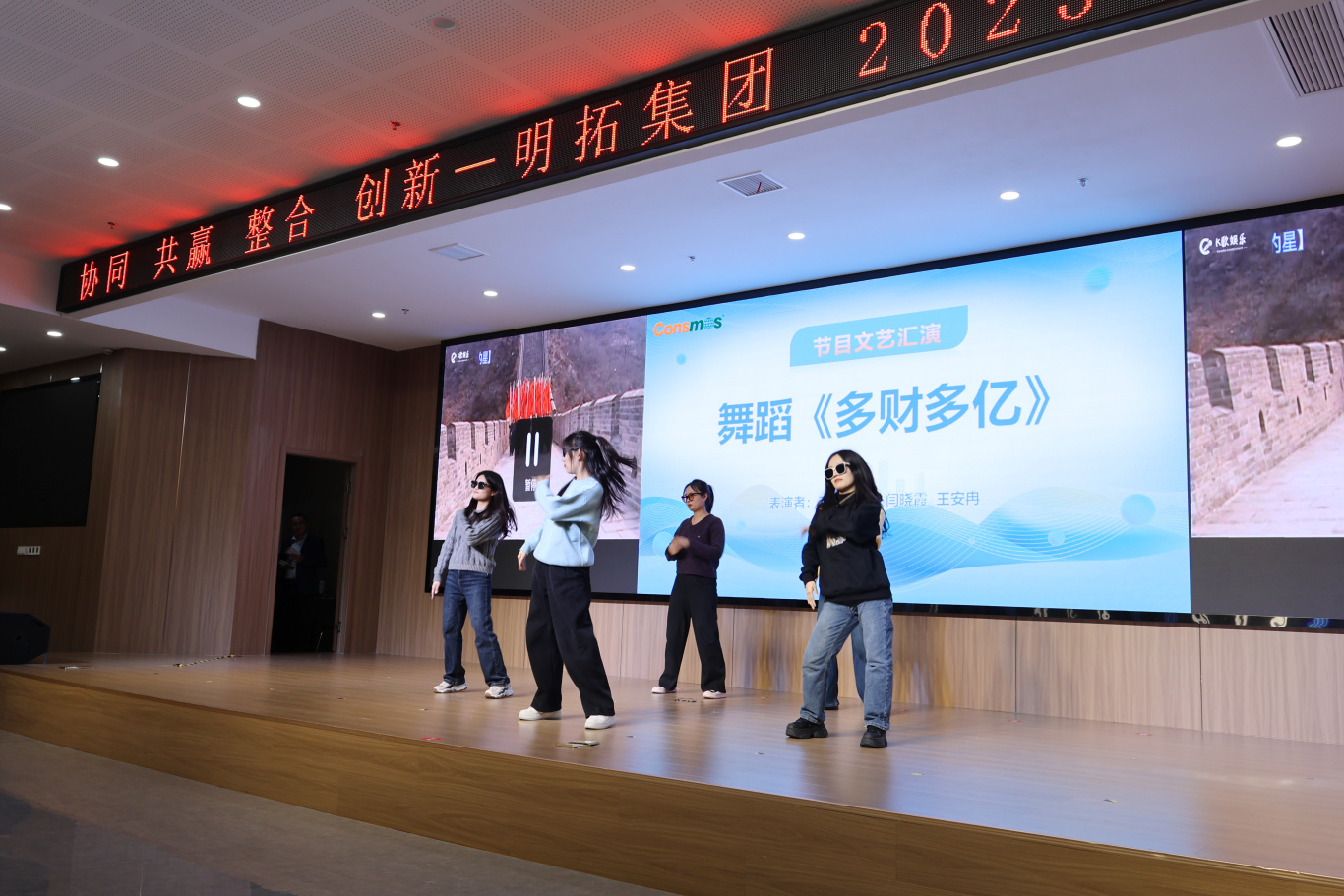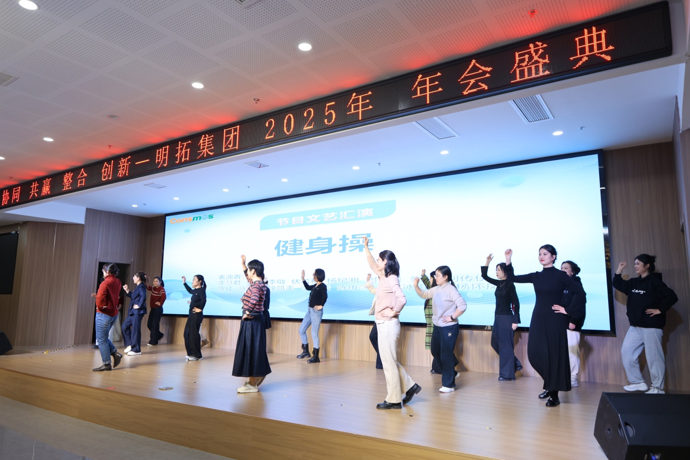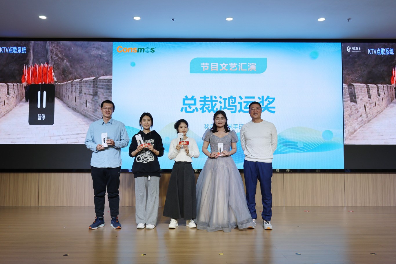 当夜幕降临,联欢晚宴将把氛围推向狂欢的高潮。各部门精心筹备的节目精彩纷呈,令人目不暇接。一段健身操活力四射,员工们矫健的身姿、整齐的动作,展现出青春的蓬勃活力与团队的高度协作;爵士舞串烧热情似火,舞者灵动的舞步、自信的笑容,瞬间点燃现场激情。还有歌曲联唱、舞蹈表演、诗朗诵等节目,形式多样,内容丰富。期间,总裁鸿运奖抽奖环节更是悬念迭起,华为智能手表等幸运之光眷顾众多员工,为年会增添欢乐与惊喜。